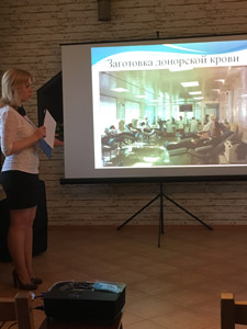 Наша станция переливания крови уделяет большое внимание пропаганде донорского движения. Мы проводим занятия для волонтеров-медиков Оренбургского государственного медицинского университета, для студентов других вузов и училищ, организуем выездные лекции на предприятиях и организациях среднего и малого бизнеса. Ведут занятия наши врачи-трансфузиологи, в том числе и я.