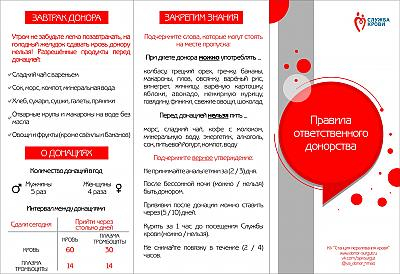 Изо дня в день и первичные, и регулярные доноры сталкиваются с распространенными вопросами о донорстве. При поиске ответов доноры чаще всего ищут информацию в интернете, но она не всегда может быть достоверной и полной. Буклет «Правила ответственного донорства» включил в себя основные аспекты донорства крови и ее компонентов. Соблюдение принципов ответственного донорства помогут первичным и регулярным донорам успешно подготовиться и совершить благородный поступок – спасти жизни пациентов ценой своей крови.
