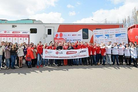 16 апреля в поддержку Программы развития массового добровольного донорства крови и ее компонентов Министерства здравоохранения Российской Федерации и ФМБА России по инициативе LG Electronics в Санкт-Петербурге был проведен День донора в рамках донорского марафона «70 лет Победы», посвященного семидесятой годовщине победы в Великой Отечественной войне. Инициативу добрых дел LG поддерживает авиакомпания «ЮТэйр» и многолетний партнер LG в области бизнеса потребительской электроники и социальных проектов - компания «Эльдорадо».
