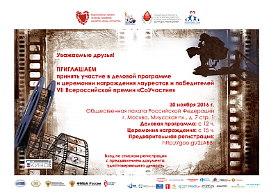 Инициативные группы и социально ориентированные некоммерческие общественные организации, учреждения Службы крови, средства массовой информации, российский бизнес, обычные граждане вошли в шорт-лист VII Всероссийской премии за вклад в развитие донорства крови «СоУчастие». 30 ноября 2016 г. в Общественной палате Российской Федерации станет известно, какие именно награды получат вошедшие в шорт-лист призеры в 13 номинациях основного и творческого конкурса премии.