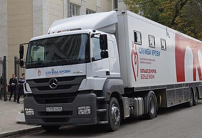 Автобус с медиками Саратовской областной станции переливания крови прибыл спецрейсом на базу спецподразделений регионального управления Росгвардии.