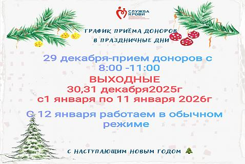 Прием доноров 01.11.2025 года будет проходить с 8.00 до 10.00.Выходные днт с02.11.2025 по 04.11.2025 года