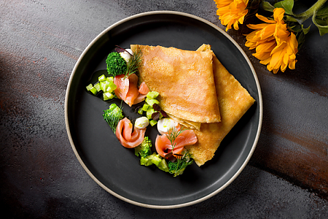 К приготовлению блинов можно подойти творчески и поэкспериментировать с различными видами муки. Шеф-повар ресторана Levantine Александр Мандрон предлагает включить в рецепт муку из нута.