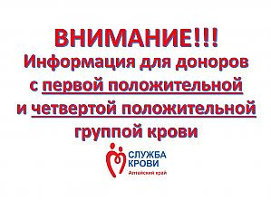 Информация для доноров с первой и четвертой положительной группой крови