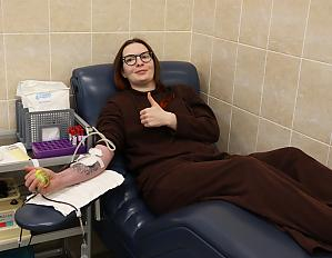 В начале мероприятия собравшимся продемонстрировали видеоролики и рассказали о возможности и важности вступления в Федеральный регистр доноров костного мозга. В результате 7 человек пополнили Регистр, сдав образцы крови.