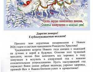 НОВОГОДНЕЕ ПОЗДРАВЛЕНИЕ ГЛАВНОГО ВРАЧА ЦЕНТРА КРОВИ