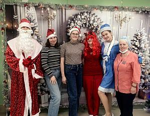Молодогвардейцы в костюмах сказочных героев Деда Мороза и Снегурочки поздравили доноров и медицинских работников с наступающим новым годом, а также помогли им окунуться в праздничную атмосферу