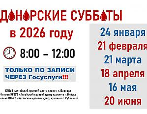Расписание рабочих "Донорских суббот" на 1 полугодие 2026 года!