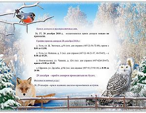 26, 27, 28 декабря 2018 г. осуществляется прием доноров только на кроводачи.